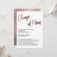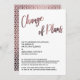 Em uma letra ousada e moderna, criei uma leitura gráfica simplesmente "Mudança de Planos"; esta imagem foi embelezada com um efeito suave de rosa-ouro falso-metálico. Abaixo deste cabeçalho estão campos de modelo para adicionar seus detalhes pessoais. Todo o texto editável aparece em uma fonte sans-serif de todos os bonés, em preto; isso pode ser alterado se você desejar. A parte traseira da placa foi coberta por um padrão bonito de rosa-ouro e branco inspirado por Marrocos; uma versão alternativa com um plano de fundo comum também está disponível. 105 //