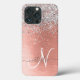 Personalize facilmente esta capa de telefone de design de chic moderna com brilho cinza bonito em prata em um fundo metálico escovado de rosa dourado.