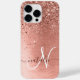 Personalize facilmente esta capa de telefone de design de chic moderna com brilho cinza bonito em prata em um fundo metálico escovado de rosa dourado.