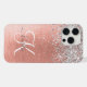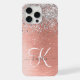 Personalize facilmente esta capa de telefone de design de chic moderna com brilho cinza bonito em prata em um fundo metálico escovado de rosa dourado.