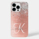Personalize facilmente esta capa de telefone de design de chic moderna com brilho cinza bonito em prata em um fundo metálico escovado de rosa dourado.