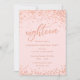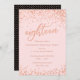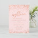 Rosa Dourado 18.o Convites de festas de aniversários: rosa convite de aniversário de ouro Bonito confetti 18.o design com folha de ouro rosa brilhante aparência bolinhas confetti. Rosa dourado "dezoito" escrito em tipografia de escrita com letra de mão. A inscrição temporária preenche os detalhes da festa. [Note que, embora os elementos deste design possam ser impressões para se parecerem com folhas, não é utilizada nenhuma folha ou tinta metálica para criar os convites - a folha de ouro rosa é um efeito impresso.]