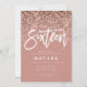 Efeito ouro-rosa, cinza-rosa-reluzente brilha o doce convite de 16 anos para a tipografia moderna. Mínimo moderno na design de tendência com o shchi elegante script. Parte de uma coleção de anos. Perfeito para a sua adolescente de vidro.