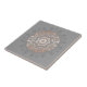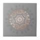 Intrincado mandala floral rosa dourado em um fundo cinza.