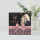Rosa dourado maceração negra | 60º Aniversário. Sessenta e fabulosa! Um belo e elegante roseiro rosa-rosa, brilho, amortecedor floral 60º Convites de festas de aniversários que você pode personalizar e enviar sua sexagésima celebração de festa de aniversário. No centro do arco rosa bonito. Substitua a foto da amostra pela sua. As palavras "60 e Fabuloso" são utilizadas por tifografia popular. Você pode personalizar fontes de script e cores de fonte no design. Por favor, note que esta design é um efeito fotográfico impresso sem brilho real. excelente 3302b para todas as ocasiões apenas muda de idade. A festa de aniversário convida o modelo que você pode personalizar com seus próprios detalhes e sua idade. modelo para 15, 16, Quinceanera, 18, 20, 21rua, 30, 40, 50, 60, 70, 80, 100, raparigas e mulheres fabulosas. Por favor, note que esta design é um efeito fotográfico impresso. Se precisar de ajuda, por favor, entre em contato comigo.