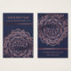 Estas cartas foram feitas para complementar o estilo glamouroso e único dos seus designs de brinco artístico. Ele possui espaço de modelo para adicionar os detalhes de contato da sua empresa, sobre um fundo azul de marinho editável. Você pode mudar este plano de fundo para qualquer cor que você preferir. A maior parte do cartão foi sobreposta com um lotus mandala de ouro falso embelezado em folha rosa. Bordas rosa douradas compensam o texto cor-de-rosa coordenador. // Concebida por Melody Watson para Paper Muserie.