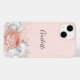 Um fundo cor-de-rosa pincelado com ouro rosa e flores brancas, rosas e folhagem prateada. Personalize e adicione seu nome. O nome é escrito com um moderno estilo escrito à mão.