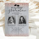 Celebre dois marcos com um cartão incrível! Esses convites de formatura conjunta elegantes combinam charme rústico e glamour moderno, apresentando fotos dos dois formandos contra um fundo de madeira cinza adornado com brilho falso de rosa dourado. Personalize para uma dupla celebração que é duplamente inesquecível.