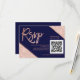 Rosa Dourada tipografia em um bloco de cores com brilho de ouro azul rosa, marinho personalizável, e glitter geométrico dourado faux stripes chic rsvp com seu código qr, perfeito para casamento elegante e na moda,