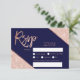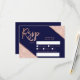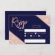 Rosa Dourada tipografia no marinho azul personalizável de bloco colorido de cor azul rosa de ouro, e faux rosa geométrico stripes chic rsvp casamento, perfeito para elegante casamento na moda,