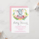 Cartão cor-de-rosa e cinzento do convite do chá de fraldas do elefante da menina. O chá de fraldas da menina convida. Flor floral e licença da aguarela. Para uma personalização mais adicional, clique por favor "personalizam-no" botão e usam-nos nossa ferramenta de design para alterar este modelo.