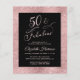 Legant elegante e chic black and sparkly rosa gold quinquagésimo convite de aniversário com "50 & Fabuloso" em um roteiro na moda rosa de ouro e uma simples tipografia rosa de ouro.