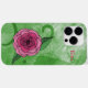 Este Rosa no iPhone 14 Verde apresenta uma rosa rosa rosa sobre um fundo digital verde para uma aparência de chique ou de cabine.