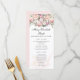Uma bonito borda floral rosa rosa, estabelece um tom elegante. O nome do amado segue em uma fonte tradicional de script. O menu continua abaixo em uma combinação de fontes clássicas vertical e itálico. Muito fácil de personalizar. Exclua todos os cursos que não se aplicarem.
