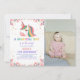 Rosa Floral Unicorn Aniversário Convites com Foto