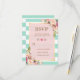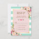 Modelo de Cartão de Resposta RSVP Rosa Floral Verde Menta Listras Brancas para você.