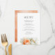 O cartão de cardápio romântico, uma peça elegante para melhorar a decoração do seu evento de sonho! Adorado com ilustrações botânicas florais em tons suaves de terracota, pêssego e branco, este cardápio oferece um toque perfeito de elegância orgânica e sofisticação para qualquer evento ou tema. Esta peça cuidadosamente trabalhada promete tornar sua celebração realmente memorável, guiando seus convidados através de uma jornada cativante de prazer e maravilha. Deixe esse cartaz de cardápio encantador elevar sua experiência de jantar a um novo nível de encantamento!