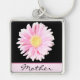 Este bonito chaveiro de margarida rosa-gerbera é personalizável, então você pode mudar a palavra "mãe" para qualquer coisa que quiser, e você pode mudar a cor, o tamanho e o tipo de fonte usados para o texto também.