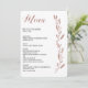 Rosa dourado, menu de casamento com flores e texto personalizável impresso em fundo branco