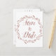 Casamento Salve os postais Data com a faixa rosa dourada e texto preto personalizado - você pode alterar o texto, impresso em fundo branco
