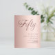 Um convite moderno e na moda para uma festa de aniversário 50ª. fundo de gradiente rosa dourado e a palavra Cinquenta escrita com letras elegantes de letras grandes em ouro rosa escuro. Personalize e adicione um nome e detalhes da parte. 1 folha = 1 convite impresso de borda a borda.