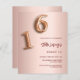 Um convite moderno, na moda e glamouroso para uma festa de aniversário Doce 16, 16. Um fundo de gradiente rosa ouro. O nome é escrito com um moderno e escuro, rosa dourado, escrito com letra de estilo manuscrito. Personalize e adicione os detalhes da sua festa. O número 16 é escrito com uma fonte de estilo de balão, script. 1 folha = 1 convite impresso de borda a borda.