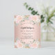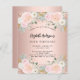 Um convite moderno, na moda e glamouroso para uma festa de aniversário 50ª (ou qualquer idade). Um fundo rosa dourado com flores rosas, rosas. O nome é escrito com um moderno estilo escrito à mão. Personalize e adicione os detalhes da sua festa. 1 folha = 1 convite impresso de borda a borda.