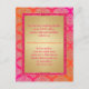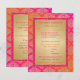 Este vibrante convite de casamento inspirado em Sari indiano oriental em tons de rosa quente, fúcsia e laranja tem um padrão damasco com aparência dourada e uma borda com brilho rosa falso (IMPRESSO, não real). As cores ricas tornam-no perfeito para um casamento étnico, casamento muçulmano ou casamento indiano oriental. ****POR FAVOR, OBSERVE que nenhum dos elementos deste convite é elevado ou relevado. Tudo é impresso plano. Este convite seria perfeito para uma cerimônia de casamento indiana, hindu, sânscrita ou muçulmana na primavera, verão, outono ou inverno, festa de noivado, aniversário ou outra festa de casamento. É mostrado aqui em papel básico. Se você quiser um papel mais pesado, sugiro o papel metálico gelo ou champanhe, que daria um brilho opalescente adorável. NÃO sugiro usar o papel dourado metálico, pois é um dourado muito escuro e brassy que realmente alterará as cores do design. O papel delicado é MUITO fino. ALÉM DISSO, se você redimensionar o convite, ou se você alterar as fontes, ou o tamanho da fonte, parte do design e/ou texto pode ser cortado. Tudo será impresso como você vê no seu monitor. Não verei seu convite, e a Zazzle NÃO corrigirá nada (erros de digitação, alinhamento, etc.).