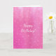 Você pode personalizar facilmente seus desejos de aniversário nesses cartões de saudação bonito. A frente e a dentro à esquerda, é a minha pintura de misturas cor-de-rosa com desenhos de estrelas brancas delicadas. O texto é escrito em branco na frente da placa e em cor-de-rosa no dentro. Cada um pode ser personalizado no formulário modelo. Obrigado por comprar CherylsArt no Zazzle.