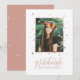 Este anúncio de graduação em na moda apresenta espaço para uma foto de solteiro do seu formando cercado por estrelas de folha de alumínio rosa dourada. O nome, a escola e o ano de aula são todos personalizáveis.