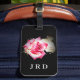 Design apresenta a imagem realista de uma elegante rosa rosa rosa no cheio, mostrada contra um fundo preto. As iniciais que você fornece são exibidas na parte inferior em uma fonte branca impressa. Limpo e fácil de ler, este design com certeza o ajudará a identificar sua bagagem!