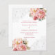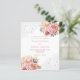 Para um casamento elegante e romântico. Um fundo branco decorado com florais, rosas e rendas de ouro rosa e rosa. Personalize e adicione seus nomes e detalhes. 1 folha = 1 convite impresso de borda a borda.