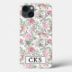 Linda e feminina, cor-de-rosa rosa, capas de iphone floral. Folhas verdes de sábio macio moldam as flores e dão ao caso uma vibração botânica. As iniciais do seu monograma encontram-se num retângulo branco no fundo. Você pode excluir as iniciais do monograma e o retângulo, se desejar.