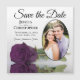 Esses ímãs para salvar a data são uma maneira maravilhosa de informar aos amigos e familiares sobre o seu casamento. Eles apresentam um design lindo que é romântico e elegante, com uma única rosa roxa ou cor berinjela de caule longo refletindo em uma poça de água com ondas e ondulações e sua foto em uma moldura oval em um fundo branco clássico. A legenda diz "Salve a Data" com espaço para seus nomes, data e local.