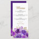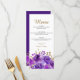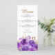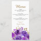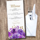 Rosa roxo e Menu Folha Dourada que você pode personalizar para um janto de 3 cursos ou personalizar como desejar. Design floral elegante com flores de rosa de de aquarela e folhas em tons de azul e ouro. Design moderno para Quinceanera, Casamento, Janto de ensaio ou outra ocasião especial. Por favor, navegue na minha Coleção de Folhas de Rosa Puro e Dourada para obter produtos correspondentes ou envie-me uma mensagem para criar os modelos de que necessita.