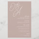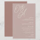 Um belo cartão de cardápio de casamento baseado em tipografia, que apresenta suas iniciais em letras de script sobredimensionadas no topo, em tons em tons para um efeito de marca d'água. Personalize com seus itens de menu embaixo, alinhados à direita. Nossa Rosa Taupe colorida é uma elegante mistura de pinks neutros, com letras brancas quentes e clássicas em um fundo rosado.
