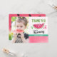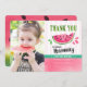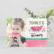 Celebre o seu primeiro aniversário com o nosso Pink num cartões de agradecimentos de Foto de Aniversário de Melon. Design apresenta uma fruta de melancia semirida em aquarela no tema de festa de aniversário "uma em melão" e sua foto.