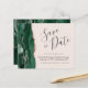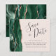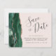 Este elegante orçamento salve o cartão de data apresenta um emerald green watercolor borda agate, aparado com falso rosa dourado. O texto personalizável combina o script de escrita manual de cinzas de carvão, o copperplate e as fontes itálicas em um plano de fundo cor-de-rosa pincelado. O verso apresenta um design emerald verde e rosa dourado.