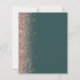 A borda esquerda deste elegante casamento moderno salve o cartão de data apresenta um rosa dourado falso borda brilhante. O texto personalizável combina manuscrito colorido cor branco de rosa pálido, fontes em copperplate e itálico em um fundo verde escuro. O verso apresenta um design verde escuro e rosa dourado correspondente.
