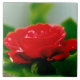 Rosa vermelha de manhã coberta com gotas de orvalho matinal. Rosa vermelha florescendo no jardim de rosa. Fotografia floral de uma flor de rosa vermelha no cheio. A rosa vermelha simboliza amor, paixão, romance, beleza, discrição, elegância, luxo e sensualidade. São perfeitos para o Dia do Namorados, casamentos, aniversários, Dias de as mães, Anniversários, Presente para o Lover, Mãe, Avó, Namorada, Namorado, presente para florista, presente para jardineiro, presente para amante de flores.. Decorem a cozinha, o banheiro... com este azulejo de cerâmica floral único, com rosa vermelha e folhas verdes. azulejo de cerâmica de cozinha rosa, azulejo de cerâmica para rosa de banheiro, azulejo de cerâmica rosa personalizado. Azulejo de rosa cerâmica, rosa de azulejo cerâmico, design de azulejo cerâmico.