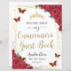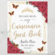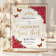 Bem-vindos convidados em estilo com este cartaz floral de convidado do rosa vermelha, amigável em termos de orçamento, com rosas vermelhas vibrantes florais, sotaques dourados a brilhar e borboletas elegantes. Impresso em uma folha de papel de solteiro, esta placa é perfeita para guiar convidados a deixar seus desejos quentes em Quinceañeras, Doce 16, 18 Aniversários, Princesas Partidas, Bat Mitzvahs, Batismos, Christenings e muito mais! Cartaz impresso no livro Barato Elegante vermelho e ouro floral com mesas e talheres Ideal para o livro de hóspedes Perfeito para eventos de primeiro plano e celebrações temáticas Fácil de personalizar - tudo é editável Adicionar um toque atencioso e na moda ao seu evento com este cartaz de livro de hóspedes quinceñera - um belo detalhe a um preço acessível. Personalize fácil e rapidamente. Basta clicar no botão Editar usando ferramentas de Design para editar o texto, o texto, o estilo da fonte, o tamanho da fonte, a cor da fonte, adicionar mais ou remover algum texto. As borboletas e a coroa são móveis, redimensionáveis, multiplicáveis e amovíveis. Para uma aparência perfeita e coordenada, explore nossa variedade de itens correspondentes disponíveis no armazenamento. c) O Feliz Cat Studio