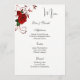 Este modelo de placa de menu é mostrado em papel básico em branco com um adorável design de impressão de rosa vermelha. Script e texto padrão em preto. Personalize os nomes e os itens de menu para o seu, clicando no botão personalizar, procure à direita e encontre as caixas adequadas para alterar as informações. Desejo-lhe os melhores votos para o seu Dia de Casamento.