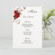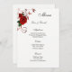 Este modelo de placa de menu é mostrado em papel básico em branco com um adorável design de impressão de rosa vermelha. Script e texto padrão em preto. Personalize os nomes e os itens de menu para o seu, clicando no botão personalizar, procure à direita e encontre as caixas adequadas para alterar as informações. Desejo-lhe os melhores votos para o seu Dia de Casamento.