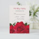 Cartão de resposta elegante de casamento com rosas vermelhas e flores brancas pequenas.