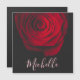 Foto macro de uma bela rosa vermelha sobre fundo preto com efeito granulado vintage com monograma personalizável.