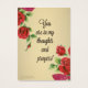 Lindas rosas vermelhas de colheita com arco A Rosary está ao redor das flores.