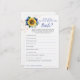 Este cartão de jogo de chá de panela é Como você conhece a Noiva? Tem 10 perguntas para os jogadores responderem. O design apresenta girassóis de aquarela e rosas azuis com folhagem e linhas de luz. Personalize a parte de trás das cartas com o nome da noiva. Produtos correspondentes disponíveis.