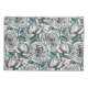 Um belo padrão digital pintado à mão, rosas brancas com folhas azuis.