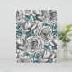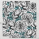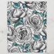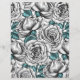 Um belo padrão digital pintado à mão, rosas brancas com folhas azuis.