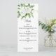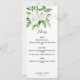 Um cartão de cardápio elegante com rosas brancas e flores do hálito do bebê.